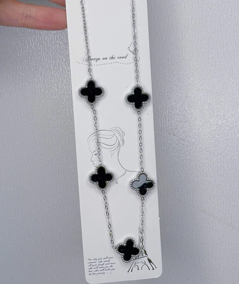 گردنبند ونکلیف استیل رنگ مشکی نقره ای استیل و صددرصد رنگ ثابت طول زنجیر استاندارد ۴۵ سانت مقاوم در برابر مواد شوینده