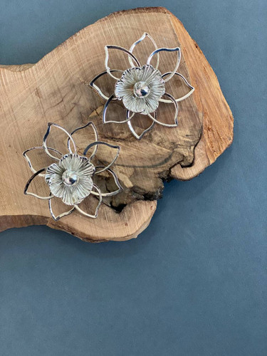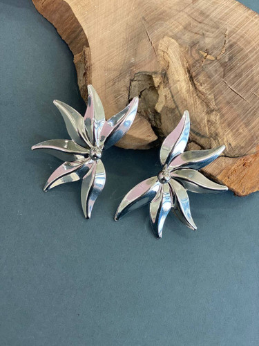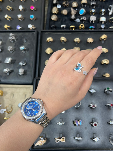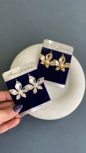گوشواره جواهری آویز پروانه و مروارید نقره ای