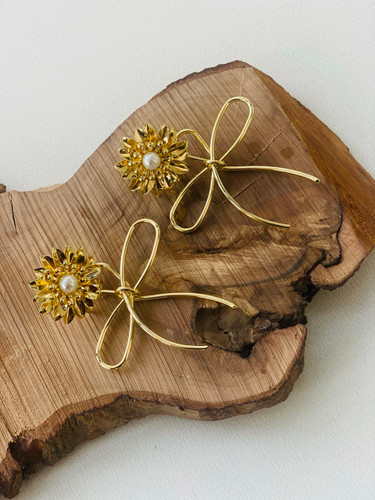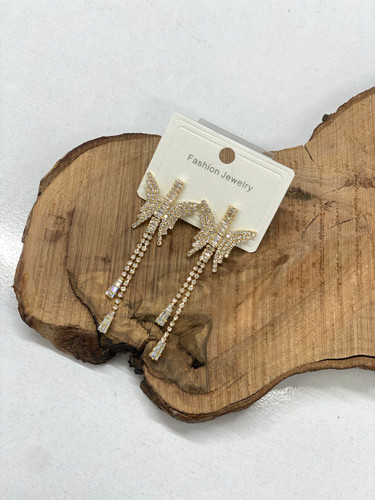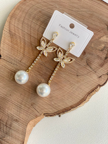 گوشواره جواهری آویز پروانه و مرواریدی طلایی